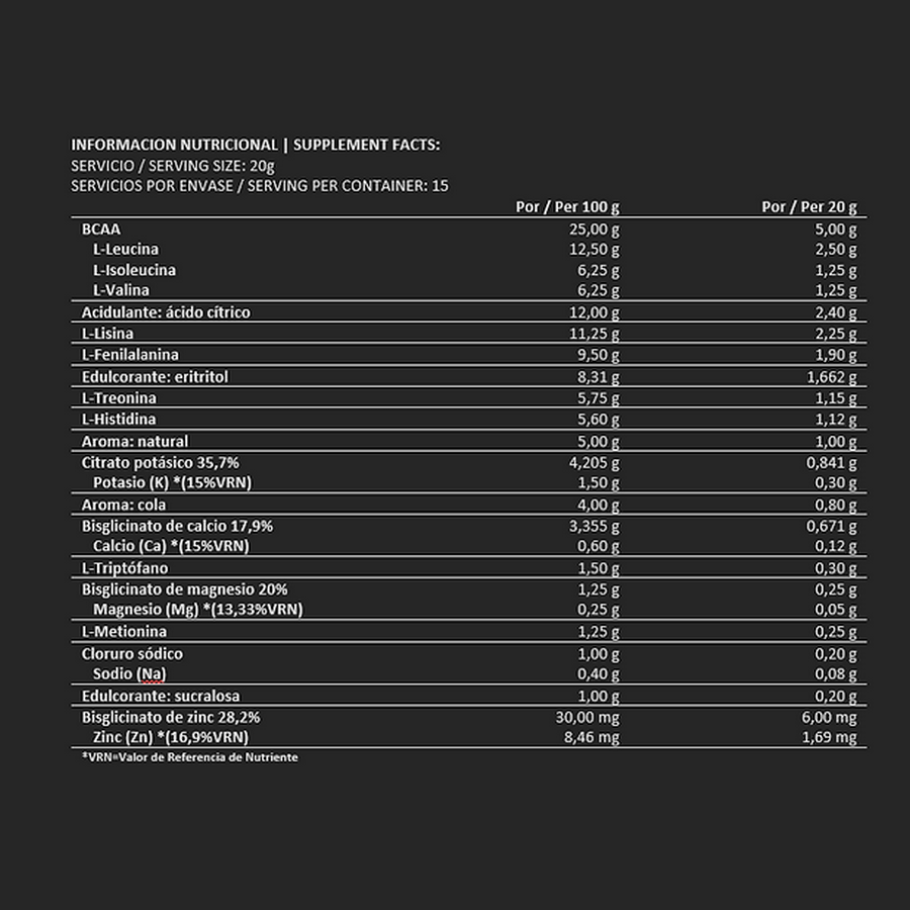 Комплекс од есенцијални амино киселини со одличен вкус и лесна и брза апсорпција, збогатен со електролити.