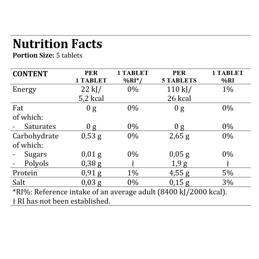 Таблетите за џвакање со вкус полни со квалитетни амино киселини.