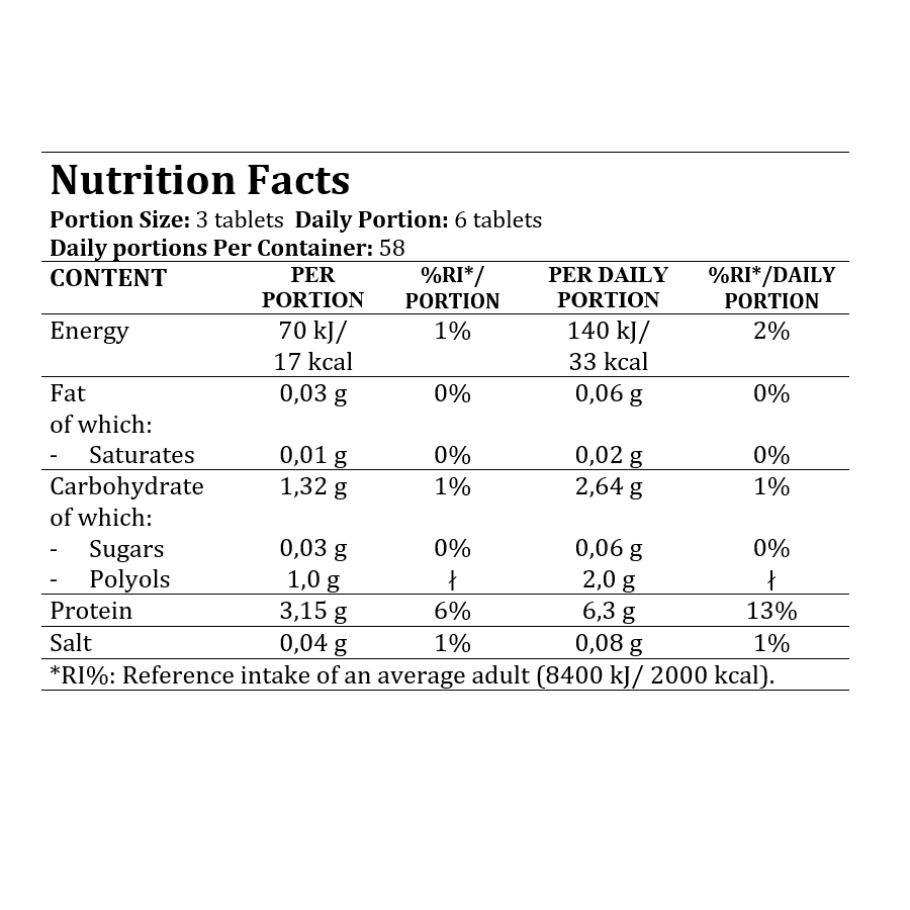 Таблетите за џвакање со вкус полни со квалитетни амино киселини. Амино киселини за пред и по..