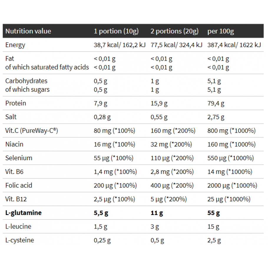 Ова особено се однесува кај претренирани спортисти, бидејќи кај нив мускулите исто така имаат зголемена потреба од глутамин, и затоа без глутамин прво останат имунолошките клетки.